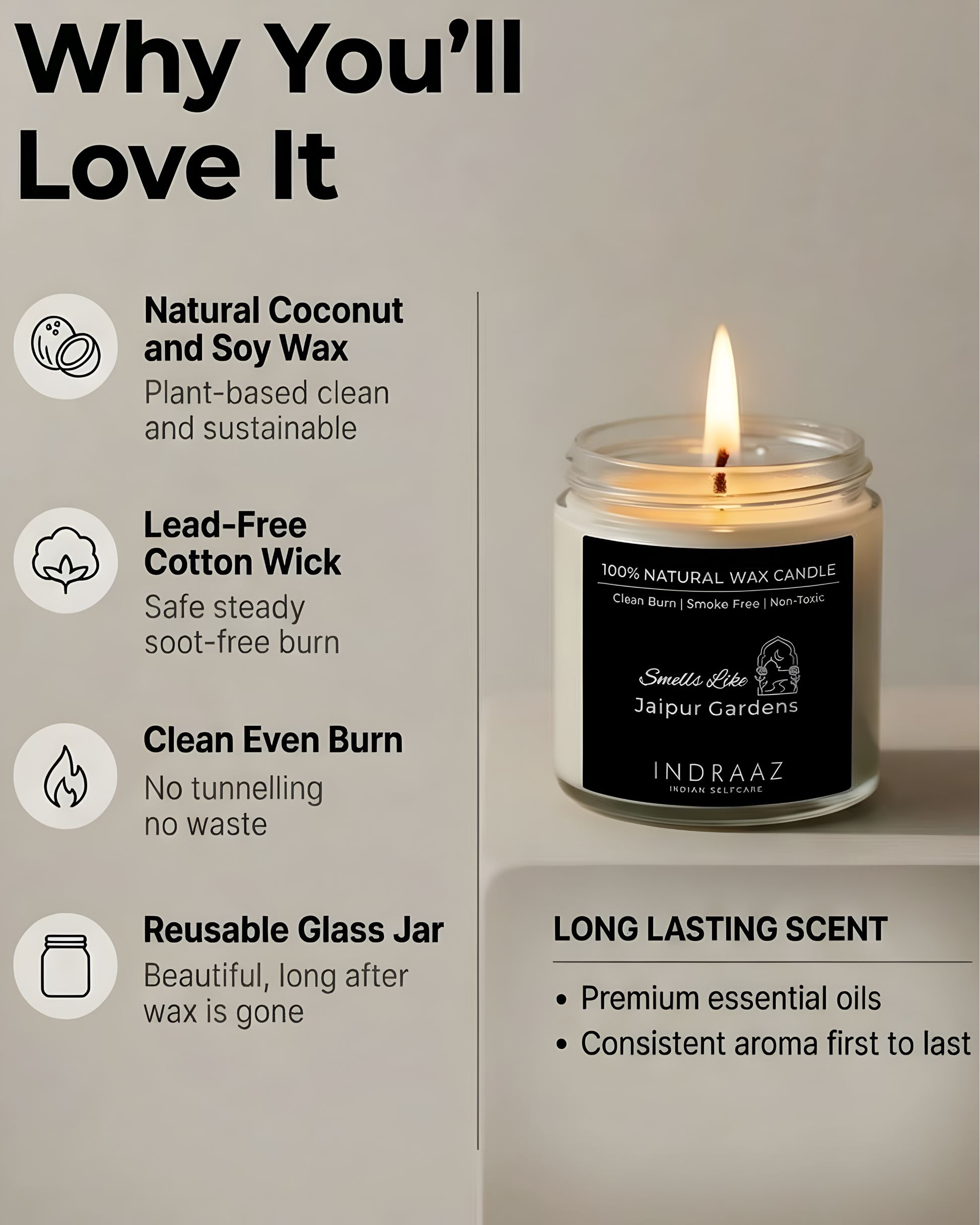 - 100% natural coconut & soy wax